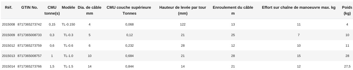 Ces treuils ne sont pas conçus pour le déplacement des personnes.